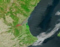 La columna de humo se pudo ver desde el espacio, como se puede apreciar en la imagen (figura 1) del satélite Terra de la NASA, llegando a las islas Baleares.