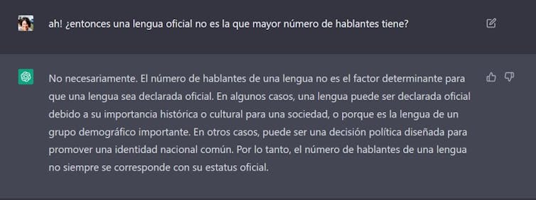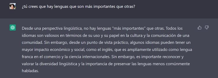 En medio de esta vorágine de innovación metaversiana, prejuicios lingüísticos cíclicos, redes sociales con likes, haters y followers, se me ocurrió hacerle a ChatGPT algunas preguntas sencillas, relativas a las lenguas y sus hablantes. Tenía curiosidad por saber cuáles eran las contestaciones de este sistema que basa sus respuestas en la información con la que ha sido retroalimentado.