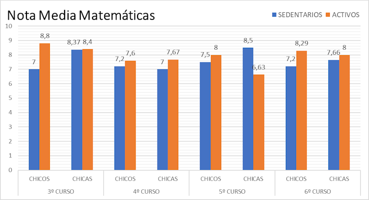 Los datos obtenidos mostraron cómo aquellos estudiantes activos sacaron, de media, mejores notas que los sedentarios. Sin embargo, esta diferencia no fue estadísticamente significativa, lo que indica que, para este grupo, no podemos establecer una relación directa entre la práctica de ejercicio y un mayor rendimiento matemático.