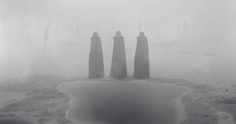 Es cierto que podemos encontrar algunos antecedentes cinematográficos de esta mirada abstracta sobre Macbeth en la severa adaptación realizada por Orson Welles en 1948, en la austera versión del húngaro Béla Tarr (1982) y en la exuberante, y siempre sorprendente, lectura de Akira Kurosawa en su obra maestra Trono de sangre (1957). Con todas ellas guarda ciertas concomitancias la película de Coen. Sin embargo, esta última ostenta una cualidad que la hace singularmente atractiva, y que, por ende, viene a reforzar uno de los grandes temas sobre los que gira el clásico de Shakespeare: la representación del poder al socaire de su ineludible trasfondo moral. Precisamente, el filme logra conceptualizar el poder en un plano abstracto porque lo contempla siempre al socaire de su intrínseca moralidad. He aquí una de las lecciones más poderosas del filme: que el poder político es un hecho preñado de moralidad.