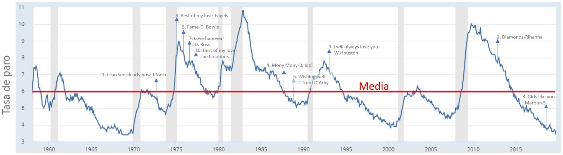 Las canciones más alegres suelen coincidir con periodos con tasas de paro elevadas