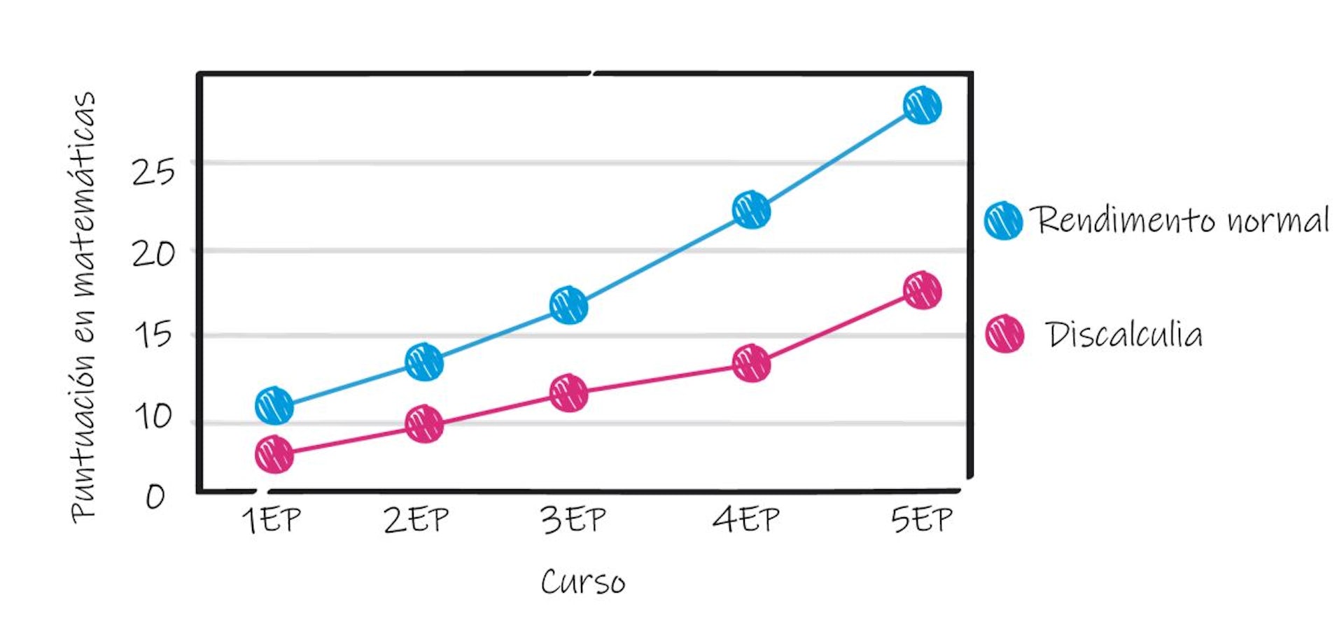 En la discalculia hay un rendimiento en matemáticas muy inferior al esperado. Suele estar dos cursos por debajo del nivel que correspondería por edad.