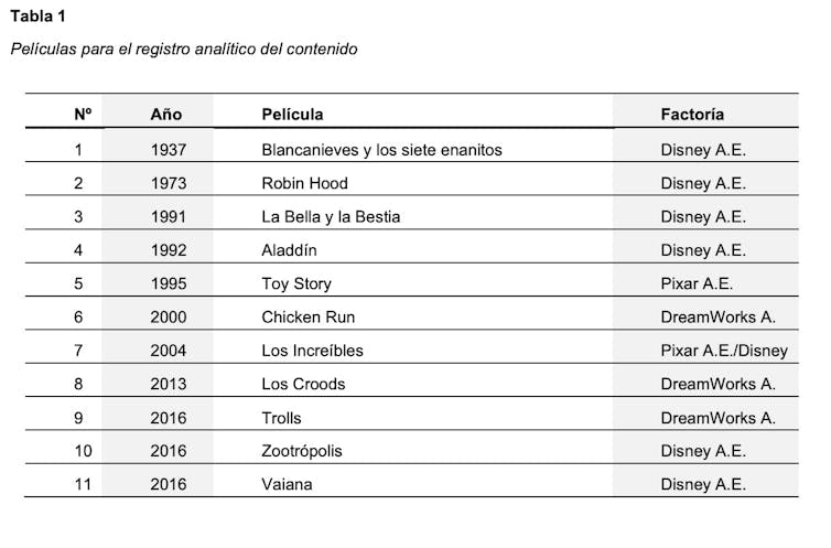 Hemos analizado once películas infantiles de animación teniendo en cuenta los siguientes criterios: