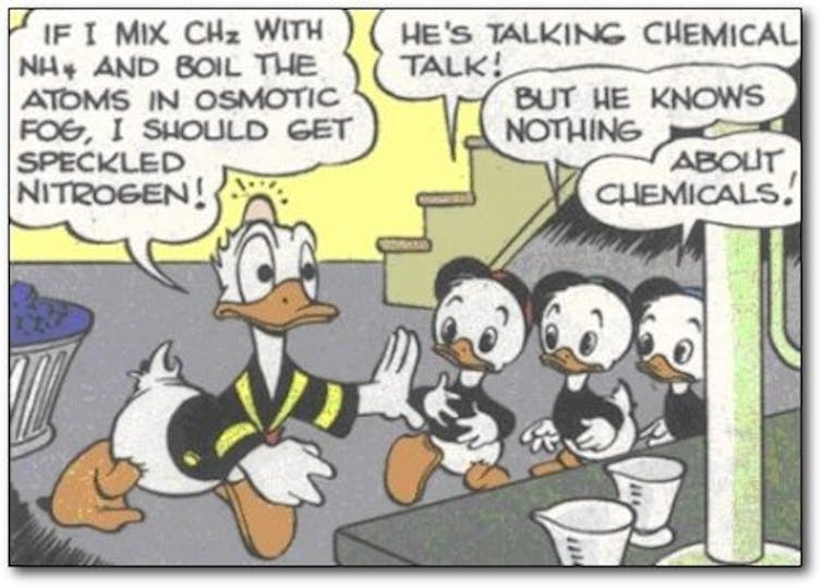 En esa época, personajes como el Pato Donald o Dick Tracy, el famoso detective, se mostraban en sus viñetas hablando de reacciones y compuestos químicos.