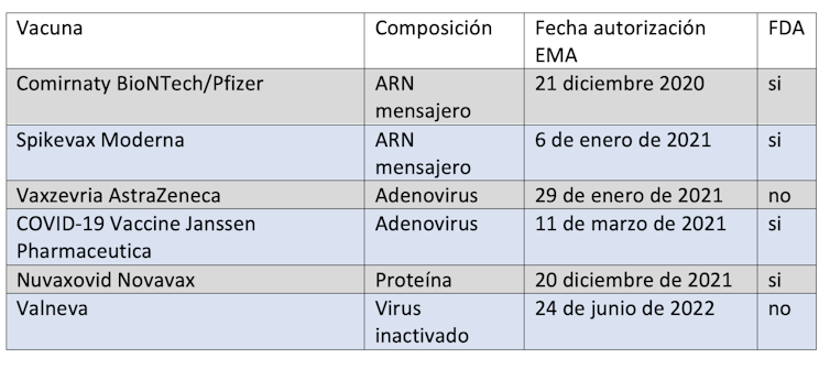 Fueron las primeras autorizadas por la EMA, pero no son las únicas. En diciembre del 2021 se autorizó la vacuna de la compañía Novavax, cuya composición se basa en la proteína de la espícula del coronavirus. Por tanto, lo que se inocula ya no es material genético ni un adenovirus, sino una proteína, como en la vacuna de la gripe. Es esta una diferencia importante para las personas que no se han vacunado desconfiando de las vacunas con información genética.